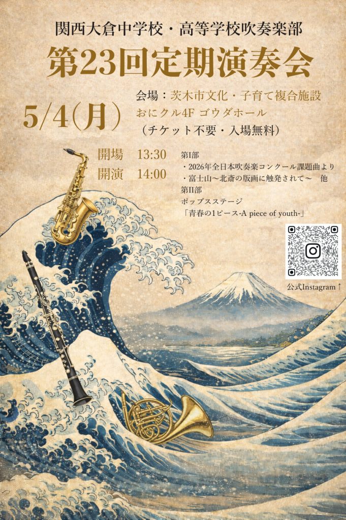 関西大倉中学生、高校生の吹奏楽部の演奏を楽しみませんか!